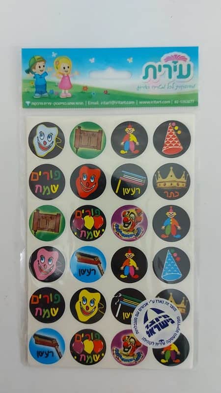 מדבקות סמלי פורים רקע שחור