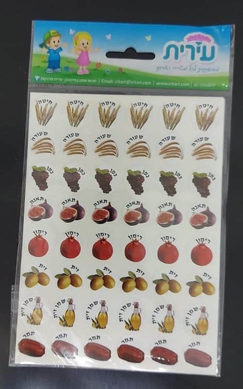 מדבקות שבעת המינים עם שמות 6 בשורה